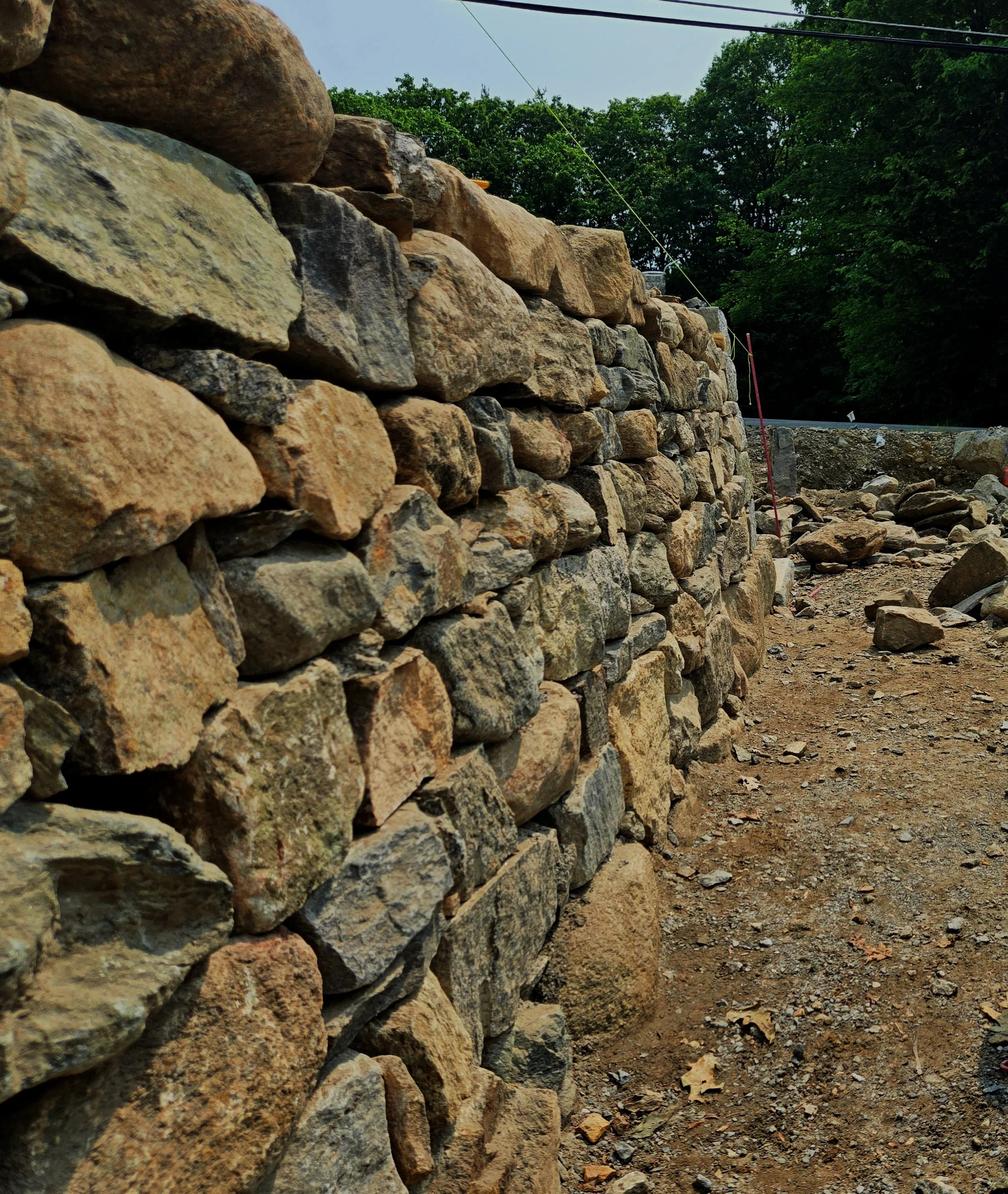 The traditional way of building walls in the Northeast. Each and every stone is meticulously worked and placed in a specific way to not only fit in like a puzzle piece, but to provide structure and stability to the wall without the use of bonding agents.